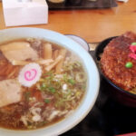 地元民溢れる食堂でソースカツ丼と喜多方ラーメンのセットを食す。