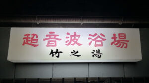 超音波浴場のネオンが眩しい竹之湯到着。そしていつものやつを繰り出す。
