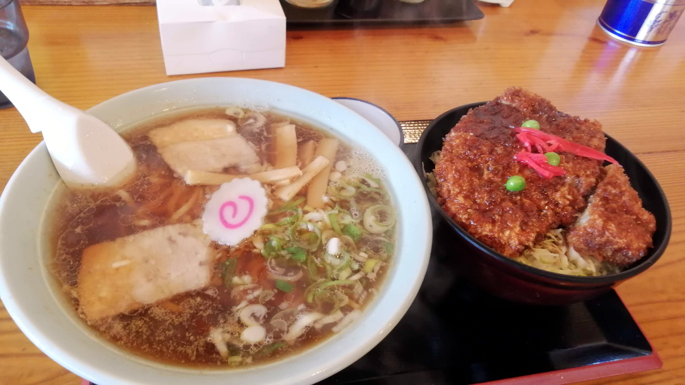 地元民溢れる食堂でソースカツ丼と喜多方ラーメンのセットを食す。