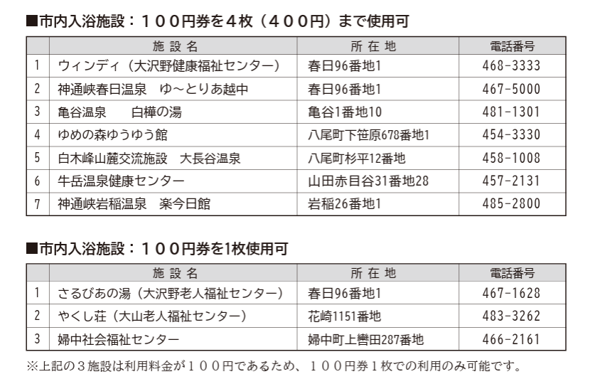 その他の公衆浴場は100円券を4枚まで使用できます。
