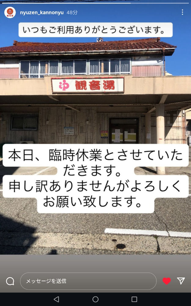 観音湯臨時休業の為→急遽大岩不動の湯へ